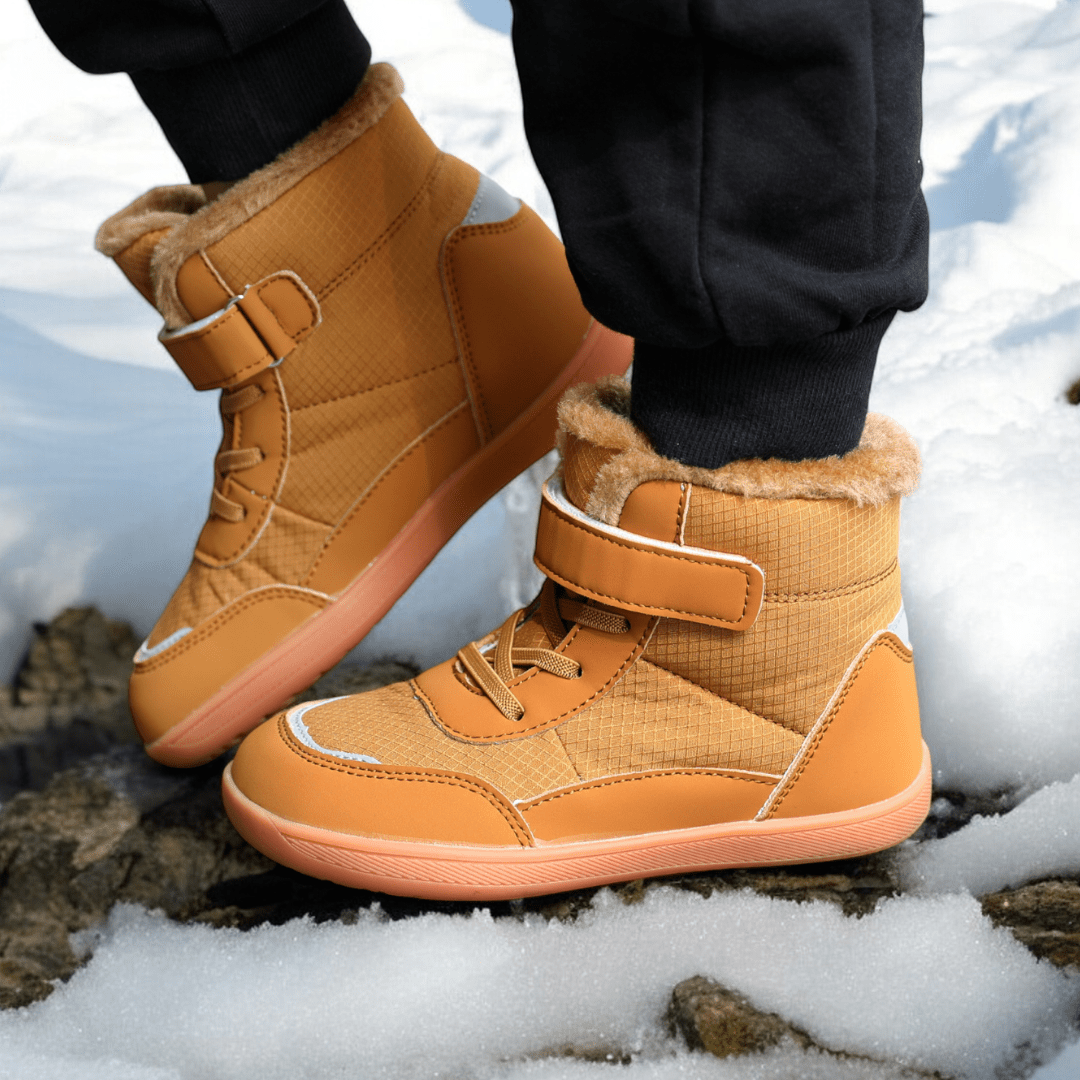 The water resiatant construction keeps little feet dry in snow and rain, while the flexible, lightweight sole supports natural movement. With a wide toe box for comfort and space to grow, kids can enjoy better balance, posture, and foot strength even in cold conditions.